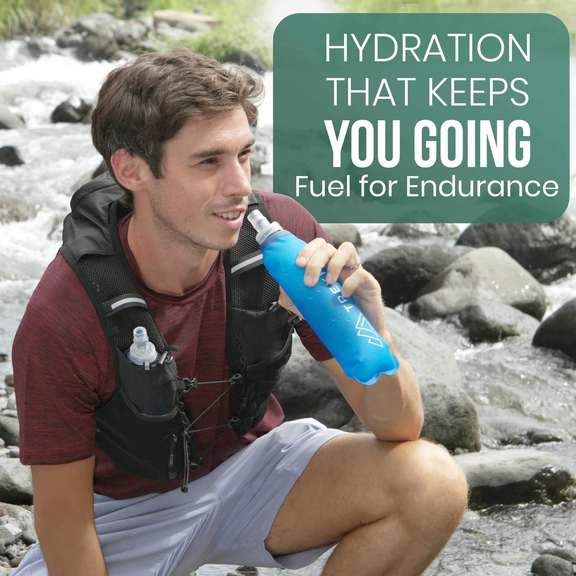 Included Components: Running Hydration Vest, 500ml Soft Flasks